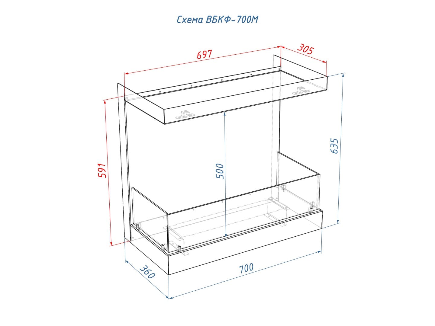Описание торцевого биокамина Lux Fire Фронтальный 700 M