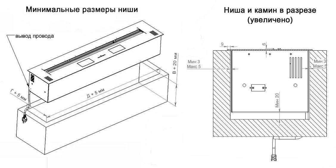 Встраиваемые варианты разделяются на такие как классические, устанавливаемые в подготовленное отверстие в стене или нише. Угловые, которые монтируются в угловую часть стены. Торцевые – открытые с трёх сторон. И сквозные, вид живого огня которых доступен в разных комнатах.