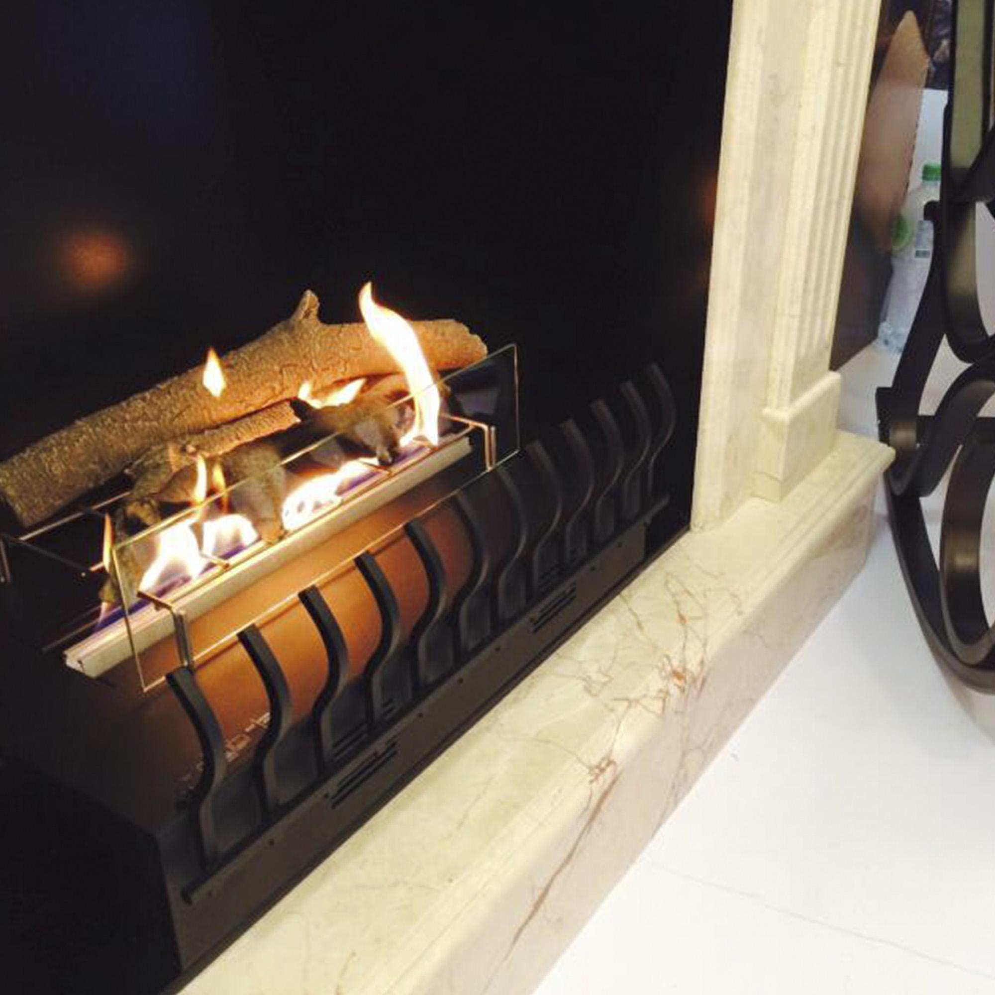 Очаг – это емкость куда заливается жидкое топливо. Емкость внутри заполняется керамическим материалом, который впитывает биотопливо, и в случае опрокидывания камина топливо не разливается. За счет этого конструкция стала полностью пожаробезопасной. Очаг встраивается в корпус из стали, который окрашивается специальной термостойкой краской, или же в заранее подготовленную нишу, изготовленную из негорючих материалов.