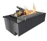 Очаг – это емкость куда заливается жидкое топливо. Емкость внутри заполняется керамическим материалом, который впитывает биотопливо, и в случае опрокидывания камина топливо не разливается. За счет этого конструкция стала полностью пожаробезопасной. Очаг встраивается в корпус из стали, который окрашивается специальной термостойкой краской, или же в заранее подготовленную нишу, изготовленную из негорючих материалов.