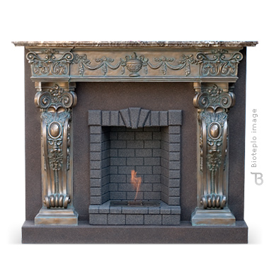 Очаг – это емкость куда заливается жидкое топливо. Емкость внутри заполняется керамическим материалом, который впитывает биотопливо, и в случае опрокидывания камина топливо не разливается. За счет этого конструкция стала полностью пожаробезопасной. Очаг встраивается в корпус из стали, который окрашивается специальной термостойкой краской, или же в заранее подготовленную нишу, изготовленную из негорючих материалов.