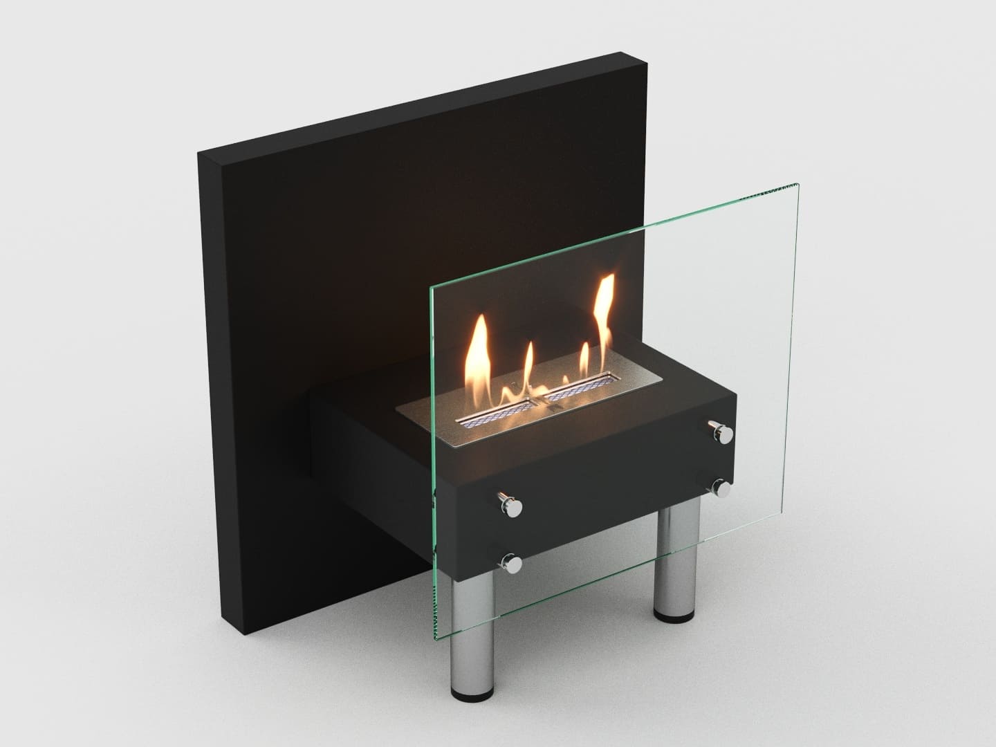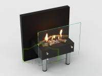 Представляет собой сборный металлический каркас с топливным блоком Lux Fire 300 М, закрепленный на 4 дистанционных держателях к защитному стеклу с упором на мебельные ножки.