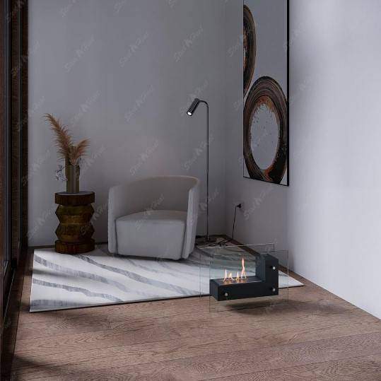 Очаг – это емкость куда заливается жидкое топливо. Емкость внутри заполняется керамическим материалом, который впитывает биотопливо, и в случае опрокидывания камина топливо не разливается. За счет этого конструкция стала полностью пожаробезопасной. Очаг встраивается в корпус из стали, который окрашивается специальной термостойкой краской, или же в заранее подготовленную нишу, изготовленную из негорючих материалов.