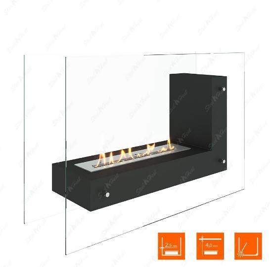 Очаг – это емкость куда заливается жидкое топливо. Емкость внутри заполняется керамическим материалом, который впитывает биотопливо, и в случае опрокидывания камина топливо не разливается. За счет этого конструкция стала полностью пожаробезопасной. Очаг встраивается в корпус из стали, который окрашивается специальной термостойкой краской, или же в заранее подготовленную нишу, изготовленную из негорючих материалов.
