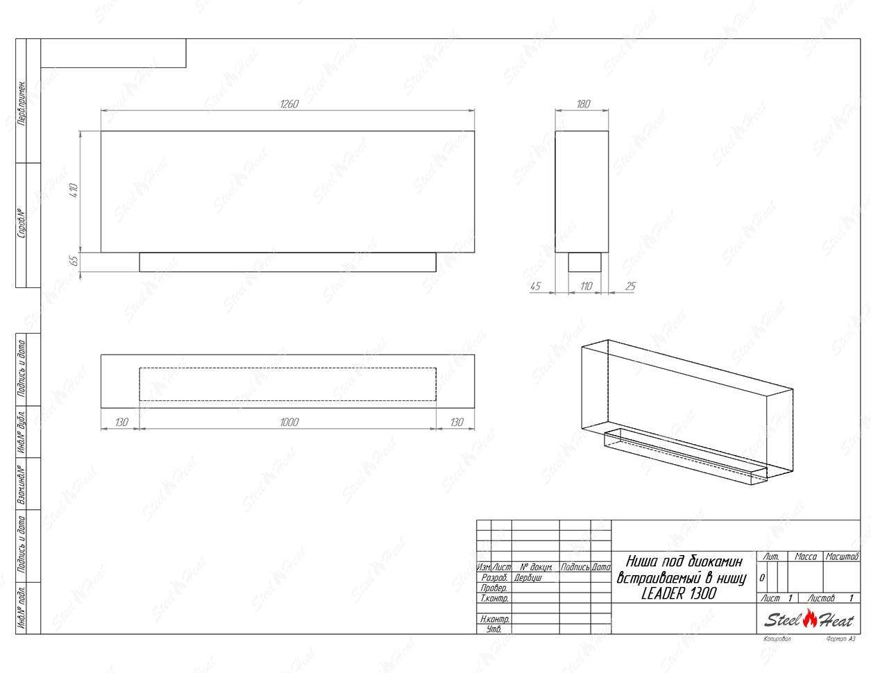 Встраиваемый Биокамин SteelHeat LEADER-SH 1300 предназначен для встраивания в глухие ниши из гипсокартона, кирпича, пеноблоков, бетона.