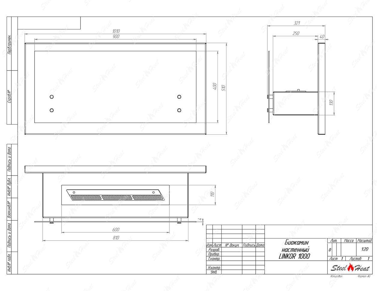 Биокамин SteelHeat LINKOR 1000 навешивается на стену из кирпича, пеноблоков, бетона и не требует специально оборудованной ниши.
