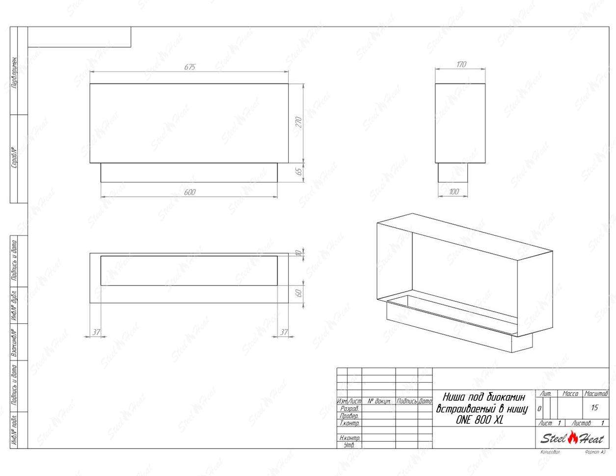Встраиваемый Биокамин SteelHeat ONE 800 XL предназначен для встраивания в глухие ниши из гипсокартона, кирпича, пеноблоков, бетона.