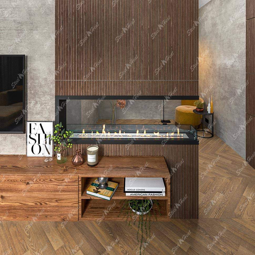 Встраиваемый Биокамин торцевой SteelHeat Leader 1400 предназначен для встраивания в глухие ниши из гипсокартона, кирпича, пеноблоков, бетона.
