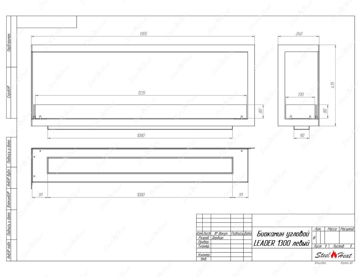 Встраиваемый Биокамин угловой SteelHeat Leader 1300 левый предназначен для встраивания в глухие ниши из гипсокартона, кирпича, пеноблоков, бетона.