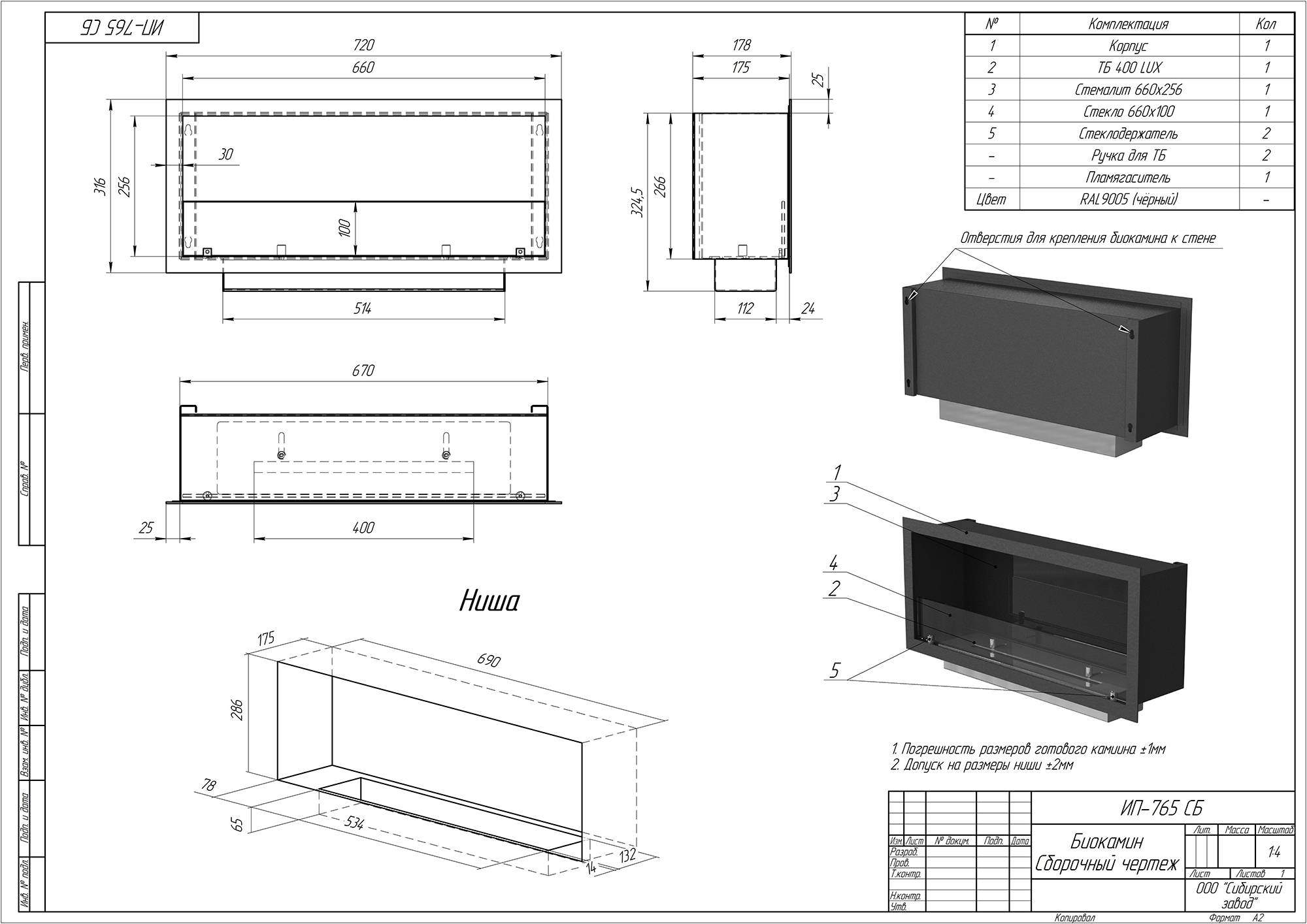 Очаг – это емкость куда заливается жидкое топливо. Емкость внутри заполняется керамическим материалом, который впитывает биотопливо, и в случае опрокидывания камина топливо не разливается. За счет этого конструкция стала полностью пожаробезопасной. Очаг встраивается в корпус из стали, который окрашивается специальной термостойкой краской, или же в заранее подготовленную нишу, изготовленную из негорючих материалов.