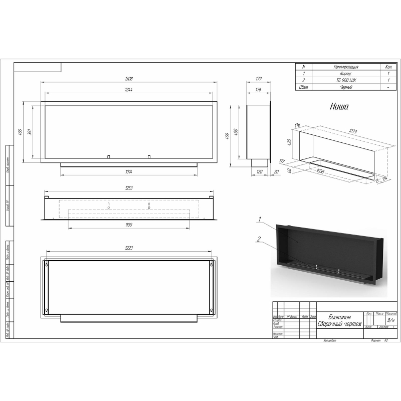 Очаг – это емкость куда заливается жидкое топливо. Емкость внутри заполняется керамическим материалом, который впитывает биотопливо, и в случае опрокидывания камина топливо не разливается. За счет этого конструкция стала полностью пожаробезопасной. Очаг встраивается в корпус из стали, который окрашивается специальной термостойкой краской, или же в заранее подготовленную нишу, изготовленную из негорючих материалов.