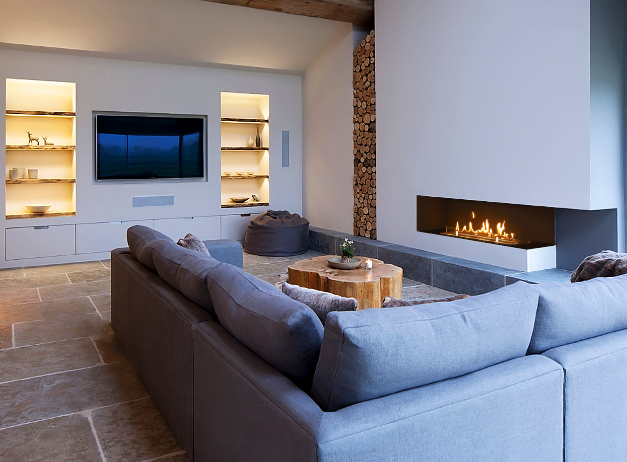 Встраиваемые варианты разделяются на такие как классические, устанавливаемые в подготовленное отверстие в стене или нише. Угловые, которые монтируются в угловую часть стены. Торцевые – открытые с трёх сторон. И сквозные, вид живого огня которых доступен в разных комнатах.