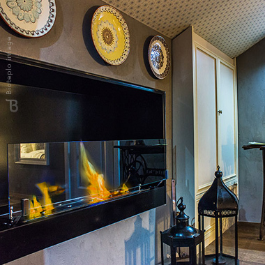 Очаг – это емкость куда заливается жидкое топливо. Емкость внутри заполняется керамическим материалом, который впитывает биотопливо, и в случае опрокидывания камина топливо не разливается. За счет этого конструкция стала полностью пожаробезопасной. Очаг встраивается в корпус из стали, который окрашивается специальной термостойкой краской, или же в заранее подготовленную нишу, изготовленную из негорючих материалов.