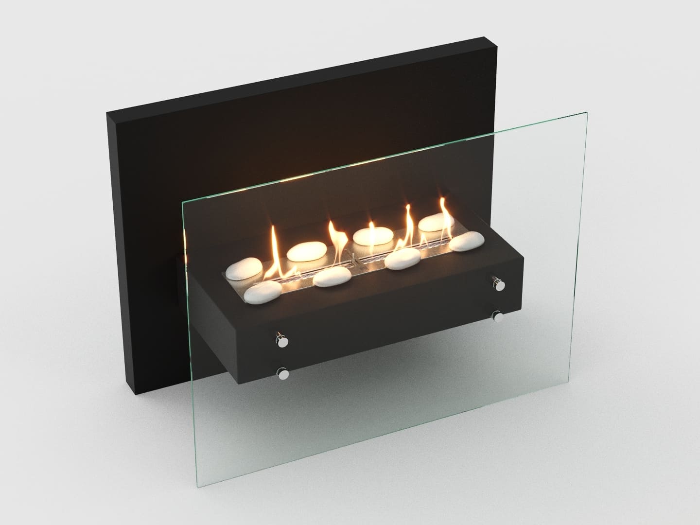 Так как конструкцией биокамина предусмотрены изолирующая задняя металлическая стенка, а также защитное фронтальное стекло, Вы можете позволить себе большую свободу в выборе интерьеров и материалов, окружающих биокамин. Но все же в большей степени предполагается размещение у стены или в портале камина.