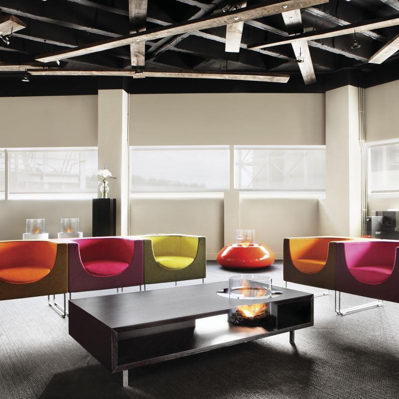 Очаг – это емкость куда заливается жидкое топливо. Емкость внутри заполняется керамическим материалом, который впитывает биотопливо, и в случае опрокидывания камина топливо не разливается. За счет этого конструкция стала полностью пожаробезопасной. Очаг встраивается в корпус из стали, который окрашивается специальной термостойкой краской, или же в заранее подготовленную нишу, изготовленную из негорючих материалов.