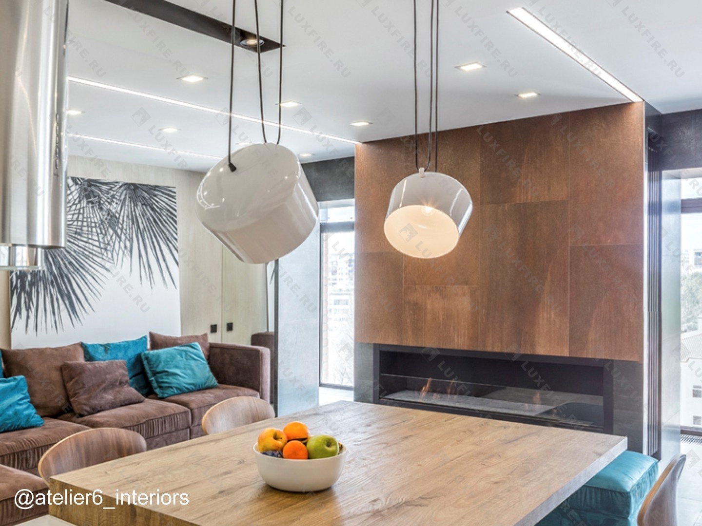 Встраиваемые варианты разделяются на такие как классические, устанавливаемые в подготовленное отверстие в стене или нише. Угловые, которые монтируются в угловую часть стены. Торцевые – открытые с трёх сторон. И сквозные, вид живого огня которых доступен в разных комнатах.