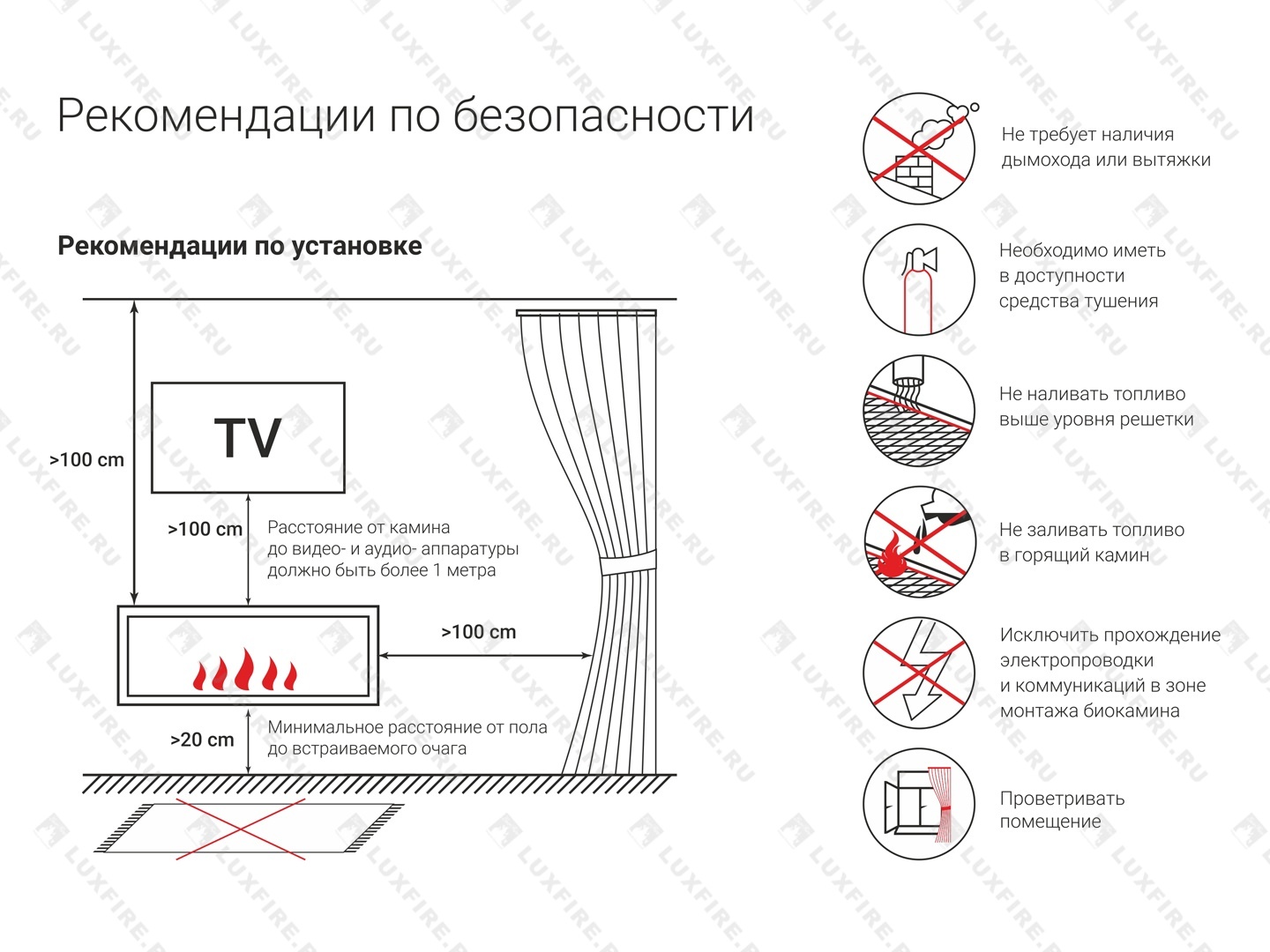 Применена технология лазерной сварки «Laser Tech». Топливный блок надежно загерметизирован внешним корпусом. Вытяжка и дымоход не требуется, но после использования проветривайте помещение !