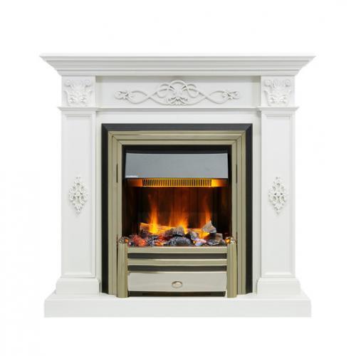 Каминокомплект «Derby» от производителя Dimplex оборудован паровым очагом «Cavendish», в конструкции которого реализована система имитации реалистичного пламени Opti-Myst. Портал камина имеет небольшие габариты, а дополнительно визуального уменьшения удается добиться за счет использования светлого покрытия. Это позволяет без труда установить камин даже в помещении, которое имеет небольшую площадь.