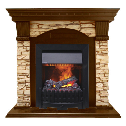 Каминокомплект «Dublin» от производителя Dimplex, оформленный паровым очагом «Danville Black», отличается относительно небольшими габаритами. Это значительно облегчает процесс выбора места для его установки в помещении. Использование камня и дерева в оформлении портала делает актуальным его установку в классических интерьерах или в помещениях, оформленных в стиле кантри.