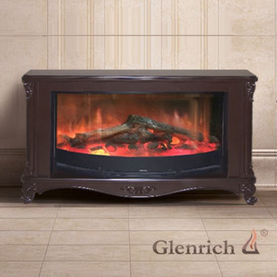 Необычная форма электротопки позволяет наслаждаться пламенем не только с фронтальной стороны, но и сбоку. Дрова в камине имеют внутреннюю подсветку. Укомплектован пультом ДУ, имеется многоступенчатая система обогрева (750-1500 Вт)