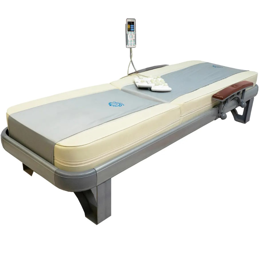Уникальная термо-терапевтическая кровать отличается многофункциональностью и роскошным дизайном. Верхний и нижний матрасы оснащены двумя блоками массажных роликов, которые установлены на прочной алюминиевой раме с карбоновым покрытием. Это обеспечивает не только безупречный комфорт, но и эффективный уход за вашим здоровьем.