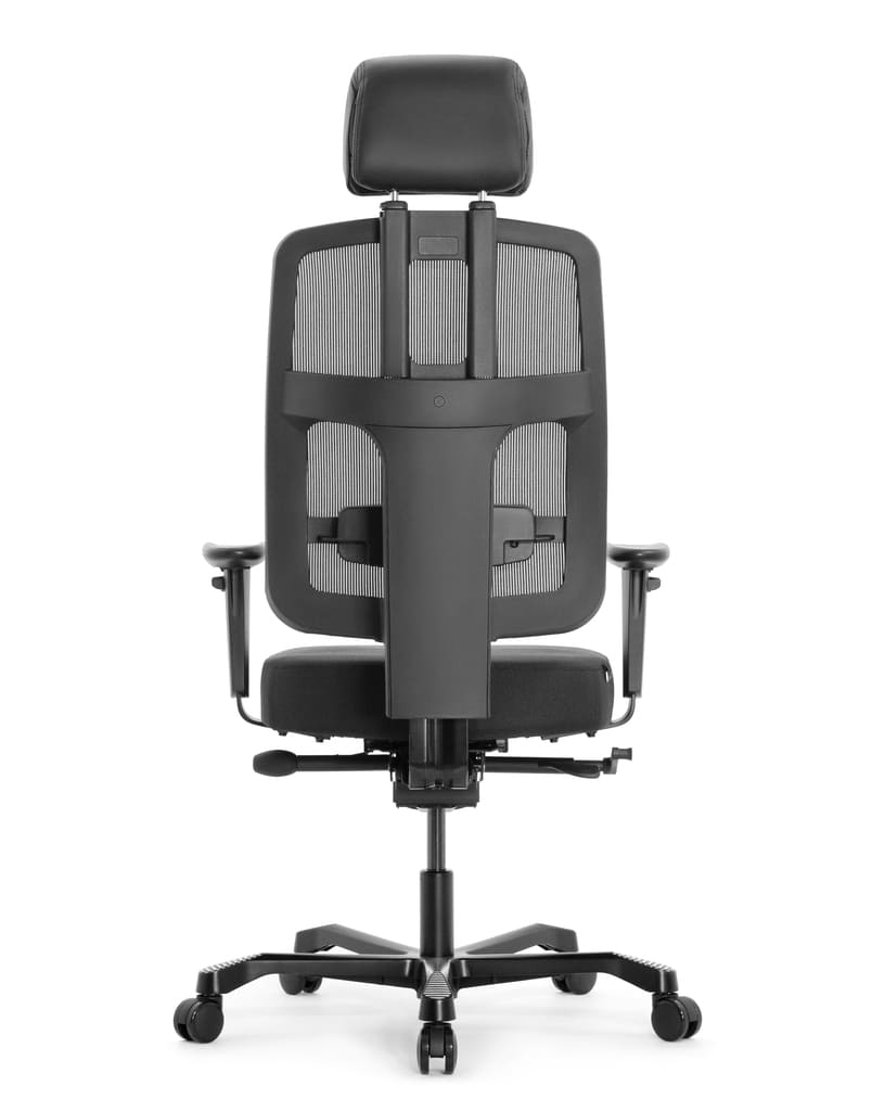 Форма спинки кресла DISPATCHER–AIR эргономичная с явно выделенной поясничной зоной. Форма позволяет достичь постоянного контакта со спинкой пользователя и эффективно снимает осевую нагрузку. Эргономичная рамная конструкция повторяет анатомическую структуру позвоночника, а эластичная сетка и поясничный валик не позволяет сидеть ссутулившись. Лекал спинки широкий и универсальный для людей с разной комплекцией. Сетка способствует хорошему теплообмену, свободно пропускает воздух и обладает комфортной эластичностью.