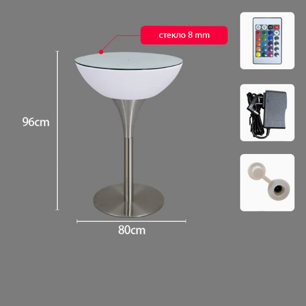 Стол светящийся круглый на металическом основании 80х80х96 в Кургане