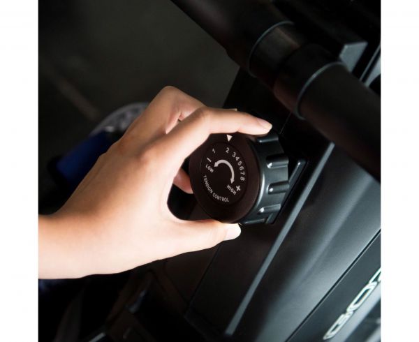 Маховик на 3 кг обеспечивает плавную и тихую тренировку, а магнитная система нагрузки позволяет выбрать один из 8 уровней интенсивности. Компьютер отслеживает время, дистанцию, сожженные калории, текущую скорость, и количество оборотов. Максимальный вес пользователя может достигать 110 кг, что делает тренажёр подходящим для большинства людей.